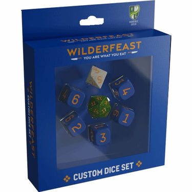 Un set esclusivo di 7 dadi personalizzati per Wilderfeast, creati per vivere al meglio le avventure nell’Unica Terra.