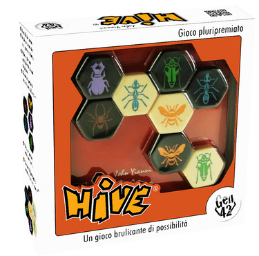 Hive è definito un gioco di tipo scacchistico, molto adatto per competizioni e tornei dove i giocatori possono mettere alla prova le proprie capacità strategiche e tattiche. All'interno della confezione di Hive troverai 22 pedine, divise nei seguenti insetti: 2 Ape Regina, 4 Coleotteri, 4 Ragni, 6 Formiche e 6 Cavallette. Ogni tipo di insetto offre al giocatore diverse possibilità di movimento e strategie da adottare.