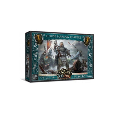 Il sigillo della Casa Harlaw è una falce d'argento. Gli House Harlaw Reapers hanno preso quel sigillo e lo hanno trasformato in una vera arma da guerra. Le falci agricole sono armi da combattimento scadenti, ma i Razziatori hanno adottato l'uso di asce a manico lungo con lame ugualmente massicce. Questi strumenti macabri possono falciare gli uomini in combattimento come una normale falce può falciare il grano nei campi. La Casa Greyjoy li sta usando, liberando i campi di battaglia dai nemici. La confezione dell'unità House Harlaw Reapers per il gioco di miniature di A Song of Ice and Fire offre ai giocatori della Casa Greyjoy un'unità incentrata sulla mischia per il loro esercito. I Razziatori entrano in battaglia con le loro falci, infliggendo enormi quantità di danni mentre avanzano. Ma mentre raccolgono, anche cuciono. Cuci il caos tra i ranghi nemici, comunque. Ai nemici non piace opporsi a questi soldati raccapriccianti. Il set include anche l'attacco per unità Warsworn che renderà ancora più gratificante eliminare i ranghi e le unità nemiche.