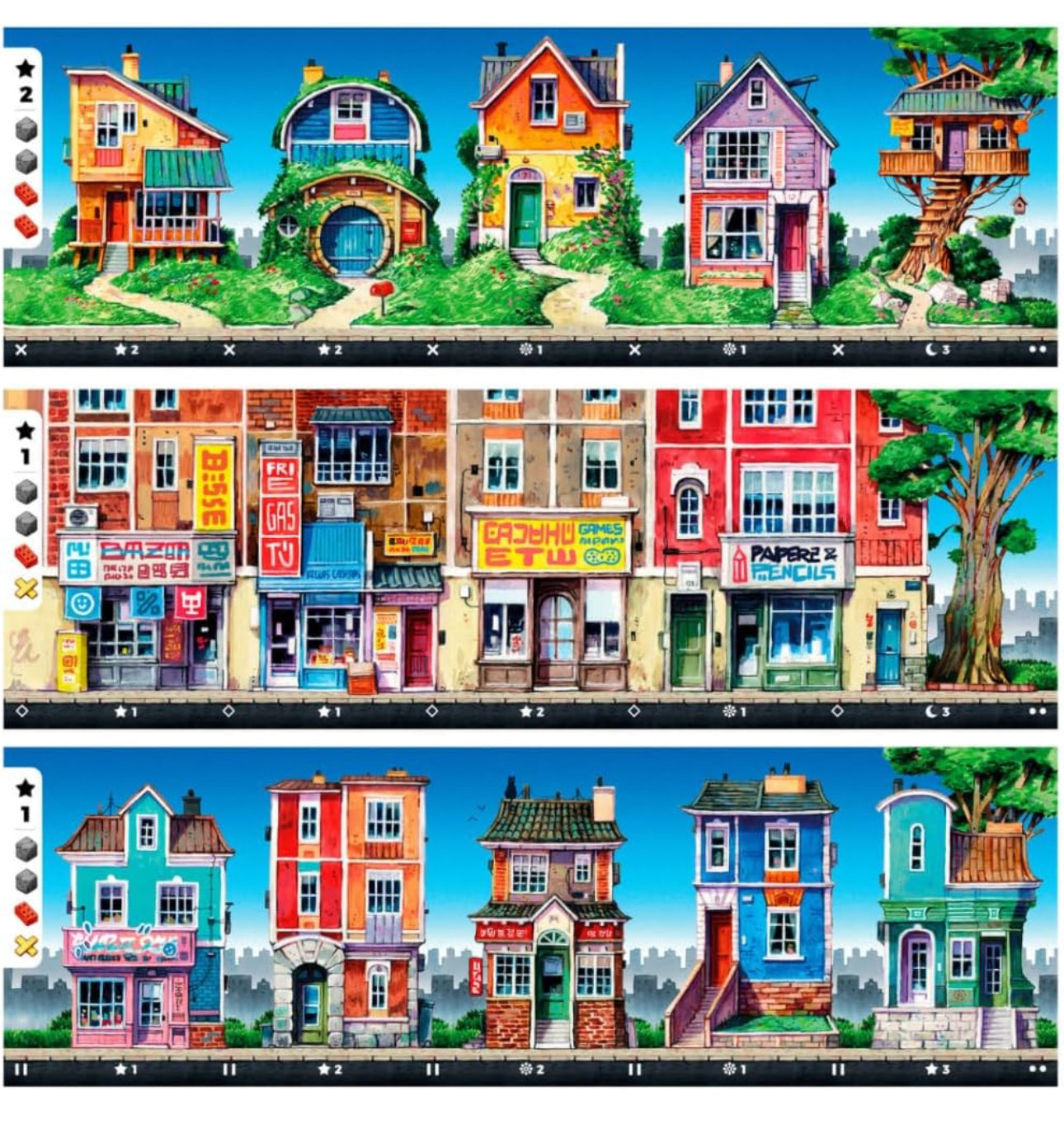 Barrio è un gioco di strategia divertente e coinvolgente che ti invita a costruire le case più belle e ad avere il miglior panorama del quartiere! Ma attenzione, perché dovrai condividere i materiali con gli altri giocatori e potresti trovarti a dover competere per ottenere ciò di cui hai bisogno. Potresti rischiare di rimanere senza materiali essenziali o addirittura di accumulare più materiali di quanti ne hai bisogno!