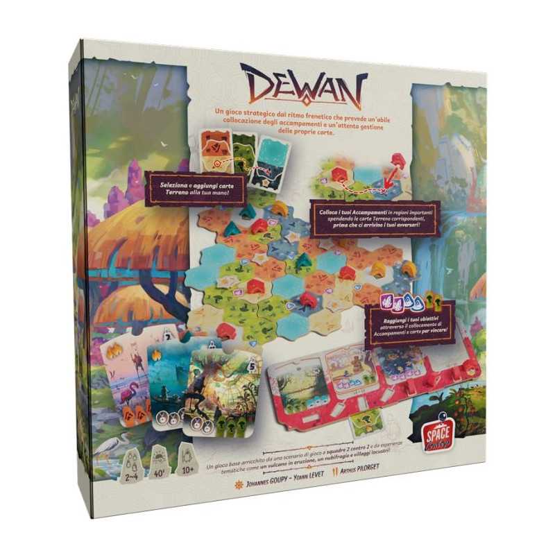 n Dewan inizia un nuovo giorno, ma le risorse stanno finendo. È tempo di levare le tende ed esplorare territori sconosciuti per garantire la sopravvivenza della propria tribù. Dewan è un gioco strategico e competitivo dal ritmo serrato, in cui ogni scelta conta e ogni errore può favorire gli avversari.