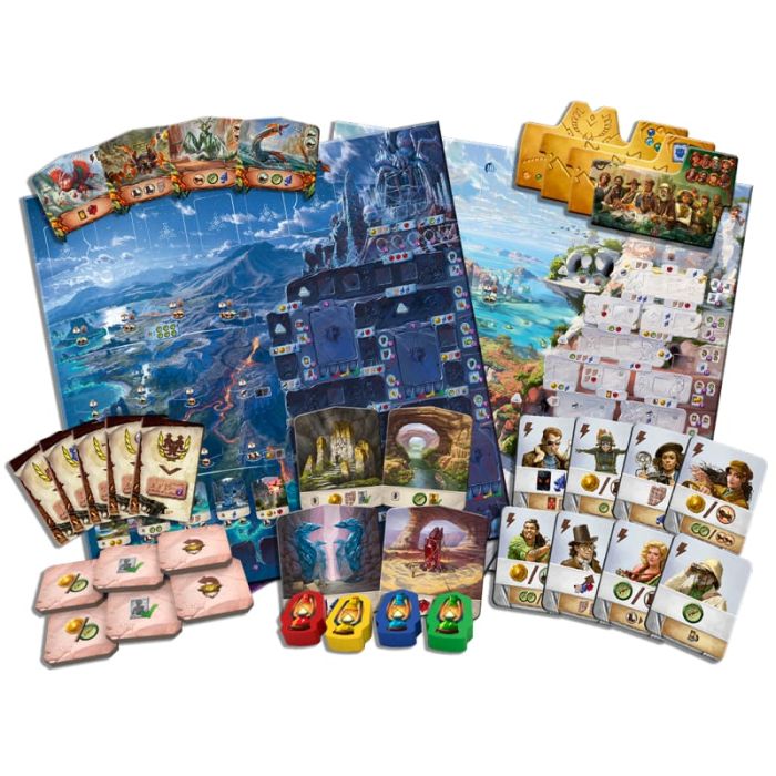 Sul lato diurno potrai scalare la pietra bianca del Tempio del Gufo, un cammino che premia pianificazione e gestione accurata delle risorse. Sul lato notturno ti attende invece il Tempio del Ragno, con le sue oscure caverne: qui faranno la loro comparsa le Tavolette Scure, una nuova risorsa che consente di attivare altari misteriosi e collocare artefatti direttamente lungo il percorso di ricerca. Questo potere può rivelarsi estremamente vantaggioso, ma un uso eccessivo comporterà penalità a fine partita.