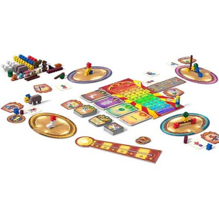 In Meeple Circus dovrete mettere alla prova il vostro senso d'equilibrio e la vostra capacità di intrattenere con una serie di numeri spettacolari realizzati grazie ad un gruppo di indomiti meeple acrobati. Impilandoli in modo creativo e rispettando le indicazioni delle carte potrete raccogliere una marea di punti che vi permetteranno di ottenere la vittoria al termine della partita.
