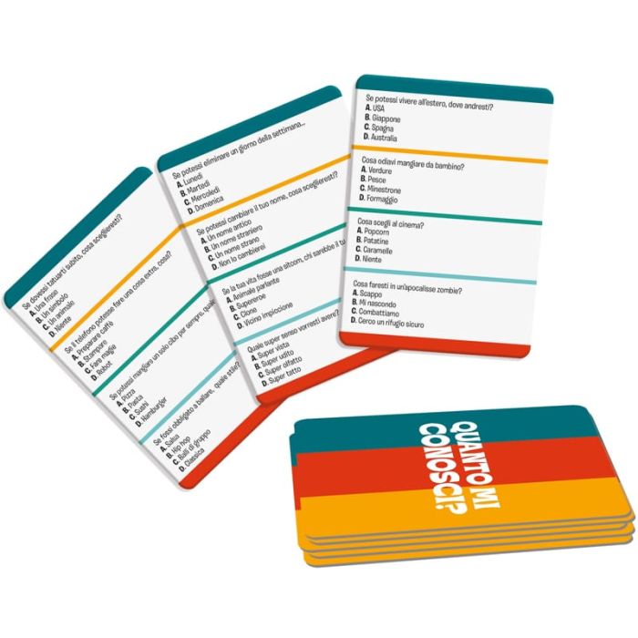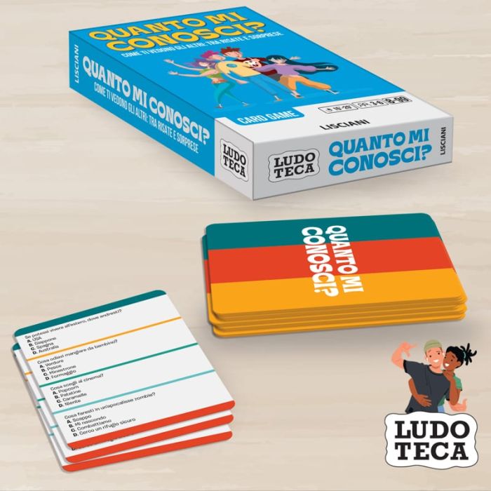 Il formato compatto di Quanto Mi Conosci? lo rende perfetto da portare sempre con sé, ideale per viaggi, pause o serate in compagnia. Ogni partita stimola conversazioni, confidenze e nuove conoscenze tra i giocatori.