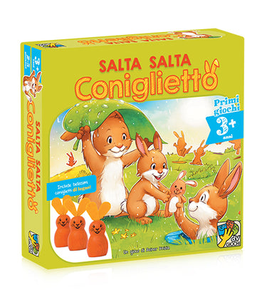 Il gioco consiste nel lanciare il dado colorato e far uscire i coniglietti dalla tana dal buco corrispondente al colore ottenuto. Sarà un vero e proprio divertimento vedere i piccoli coniglietti di legno uscire uno dopo l'altro, cercando di essere il più veloci possibile per vincere la partita. Inoltre, Salta Salta Coniglietto è un gioco educativo: aiuterà i bambini a riconoscere i colori e a sviluppare la loro manualità, grazie alle 20 pedine sagomate in legno incluse nella confezione.