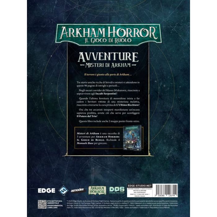 Attenzione: "Arkham Horror - Il Gioco di Ruolo - Misteri di Arkham" è una espansione e necessita di una copia di Arkham Horror - Il Gioco di Ruolo - Manuale Base per essere giocato!