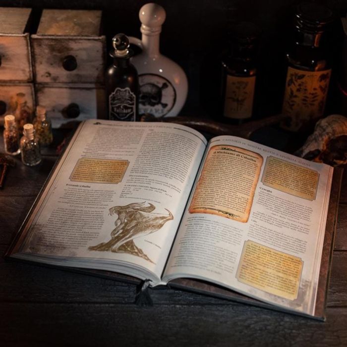 Edizione con copertina rigida ed effetti UV, una spettacolare illustrazione commemorativa ed esclusiva per il 50ennale Chaosium di Francesco Biagini, 464 pagine a colori, segnalibro in velluto.