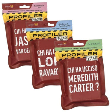 Il bundle Profiler Pocket - Set da 3 Casi | Medium Bundle include i seguenti prodotti e ti permette di acquistarli ad un prezzo davvero conveniente:Profiler Pocket - Chi Ha Ucciso Jasper Van Der Meer?Profiler Pocket - Chi Ha Ucciso Lord Ravary II?Profiler Pocket - Chi Ha Ucciso Meredith Carter?Per informazioni più dettagliate sul contenuto dei singoli prodotti ti suggeriamo di consultarne la scheda prodotto singola. I bundle sono promozioni soggetti a cambiamenti ed esaurimento scorte. Non attendere troppo tempo prima di acquistarlo perché potresti non trovarlo nuovamente!