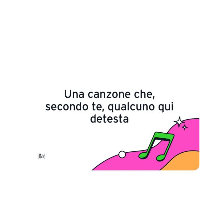 Add to Playlist è un party game musicale a squadre che utilizza le canzoni per rivelare gusti, ricordi e personalità. La musica diventa il linguaggio segreto con cui leggere gli amici, metterli alla prova e sfidarli sul loro terreno preferito: le playlist. Le squadre pescano carte con spunti evocativi e personali, poi costruiscono una playlist scegliendo le canzoni che meglio li rappresentano. Una volta partita la musica, l’obiettivo è indovinare quale giocatore ha aggiunto ogni brano e quale spunto lo ha ispirato. Ogni intuizione corretta fa guadagnare blocchi Discoteca da conquistare sulla Pista da Ballo. Tra colpi di genio, scelte iconiche e rivelazioni musicali inaspettate, Add to Playlist trasforma Spotify e simili in un vero campo di gioco competitivo, perfetto per feste, serate tra amici e gruppi che amano ridere… e ascoltare buona musica.