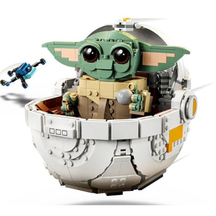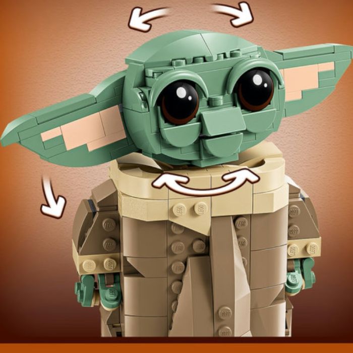 Modello build-and-display: Grogu è dotato di braccia mobili, testa e orecchie snodabili, e può essere posizionato dentro o fuori dal suo passeggino galleggiante.