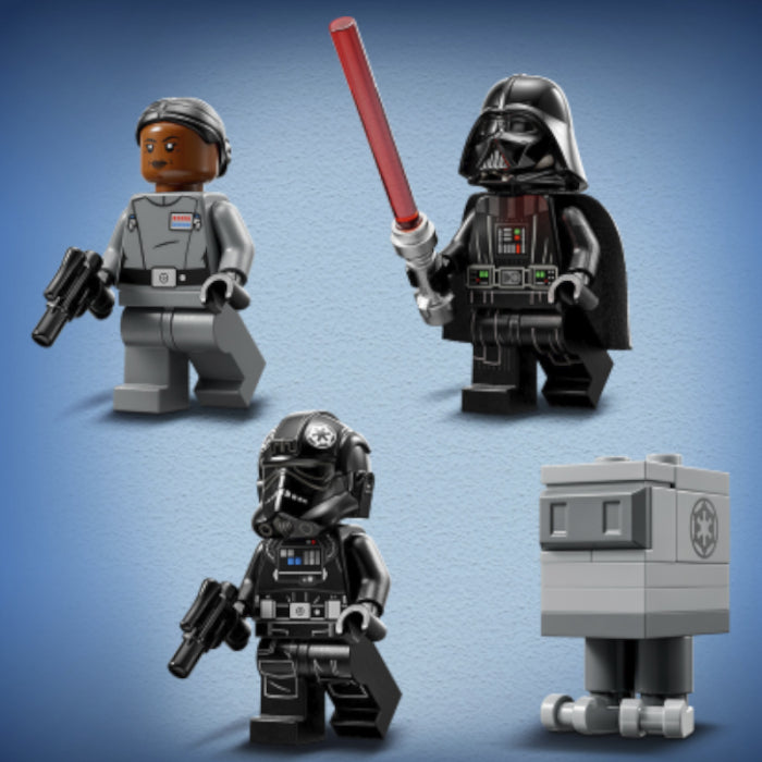 3 minifigure LEGO® Star Wars™ + droide: Darth Vader con spada laser, il Vice Ammiraglio Sloane e un pilota del TIE Bomber, ciascuno con pistola blaster, oltre al droide Gonk Droid.