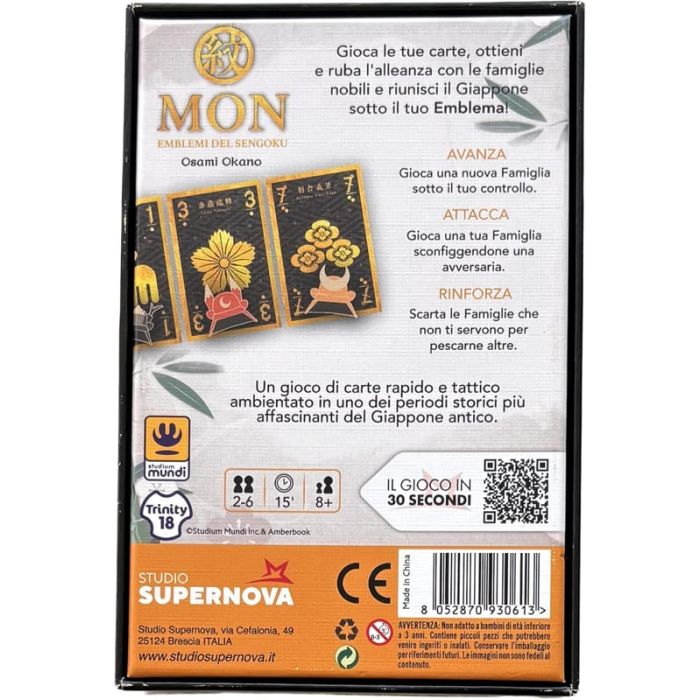 Mon - Emblemi del Sengoku riporta i giocatori nel cuore del periodo Sengoku, un’epoca segnata da guerre incessanti tra signori feudali e culminata con l’unificazione del Giappone nel 1600. In questo contesto storico di intrighi, alleanze e tradimenti, i simboli dei grandi clan diventano il fulcro di una sfida fatta di strategia e rischio.