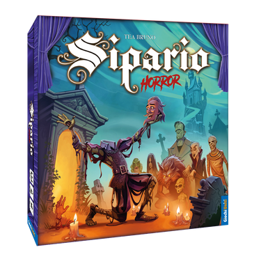 In Sipario Horror, ogni round mette in scena un brivido teatrale. Il giocatore in scena pesca le carte Copione, che indicano i personaggi da interpretare e i vincoli da rispettare. Con l’aiuto di un altro giocatore, improvvisa una scena basata su un tema scelto dagli altri partecipanti.